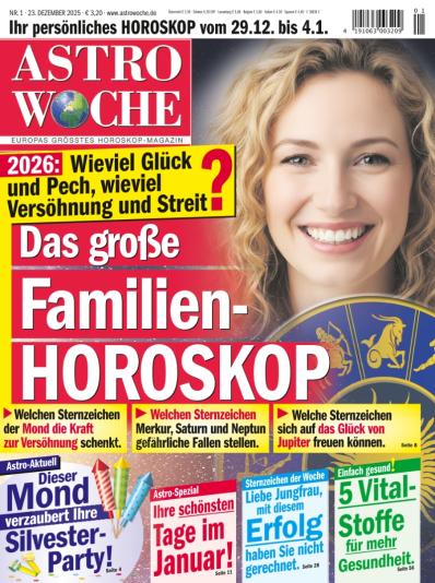 Europas größte wöchentliche Horoskop-Zeitschrift hat die Antworten. ASTROWOCHE ist die Zeitschrift für alle, die mehr erwarten: keine oberflächlichen, allgemein formulierten Voraussagen, sondern mehr persönliche Tageshoroskope, mehr Astrologie, mehr Lebensberatung. ASTROWOCHE ist für Laien und Fortgeschrittene gemacht, erklärt Woche für Woche mit Experten die Planentenkonstellationen, liefert fundierte Horoskop-Analysen von Profis und bringt lebensnahe Tipps, die jeder Leser umsetzen kann. ASTROWOCHE ist auch unterhaltsame Lektüre und ein ausführlicher Gesundheitsratgeber für alle, die bewusst und in Harmonie mit ihrem Körper und ihrer Seele leben wollen. Ein einzigartiges Extra in ASTROWOCHE ist das exklusive Tarot-Orakel, das den Lesern im Alltag auf persönliche Weise Lebensberatung und Quelle der Inspiration sein kann.